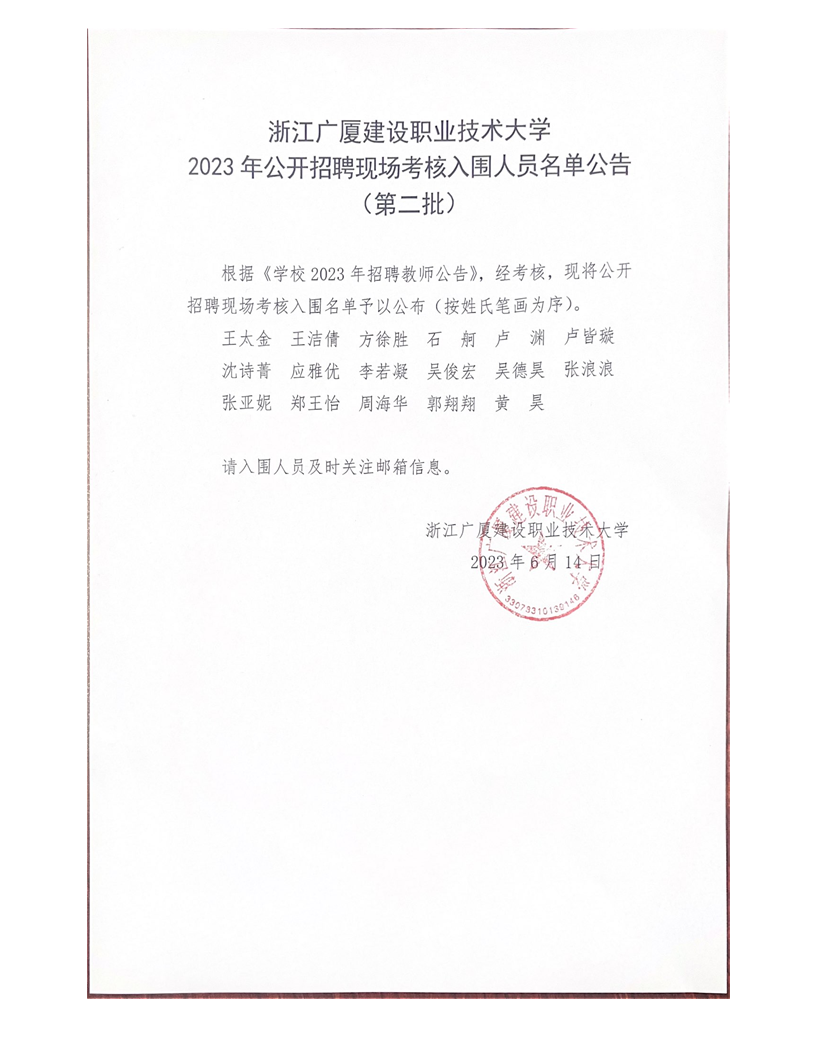 关于2023年公开招聘现场考核入围人员名单(第二批)的公告
