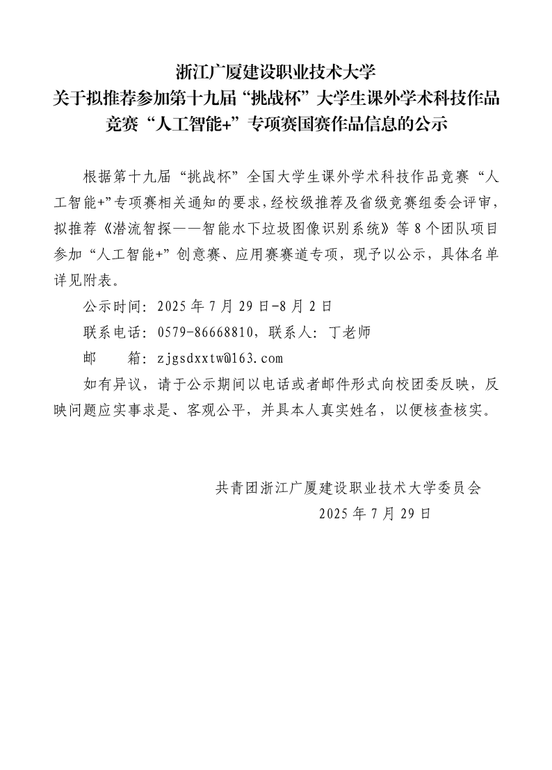关于拟推荐参加第十九届“挑战杯”全国大学生课外学术科技作品竞赛“人工智能+”专项赛作品的公示