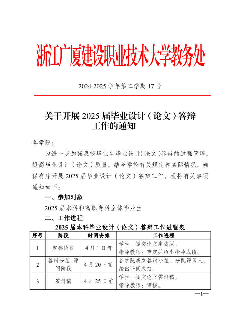 关于开展2025届毕业设计(论文)答辩工作的通知