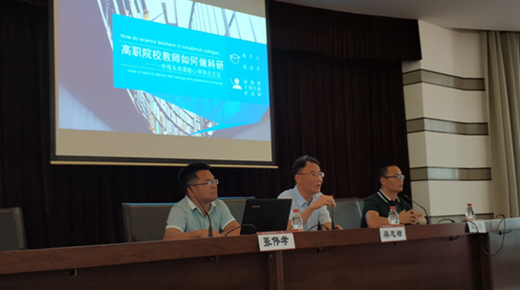 讲座伊始,学院院长蒋忠樟教授作了课题申报动员讲话。他指出高校有人才培养、科学研究、社会服务以及文化传承等四大基本职能,高职院校的科研工作对促进教学,提高教学质量,促进技术创新与社会服务,提高教师能力等方面有重要的意义;高职院校教师发展要特别注重教学与科研之间的相互促进关系,真正达到教学与科研的双赢。